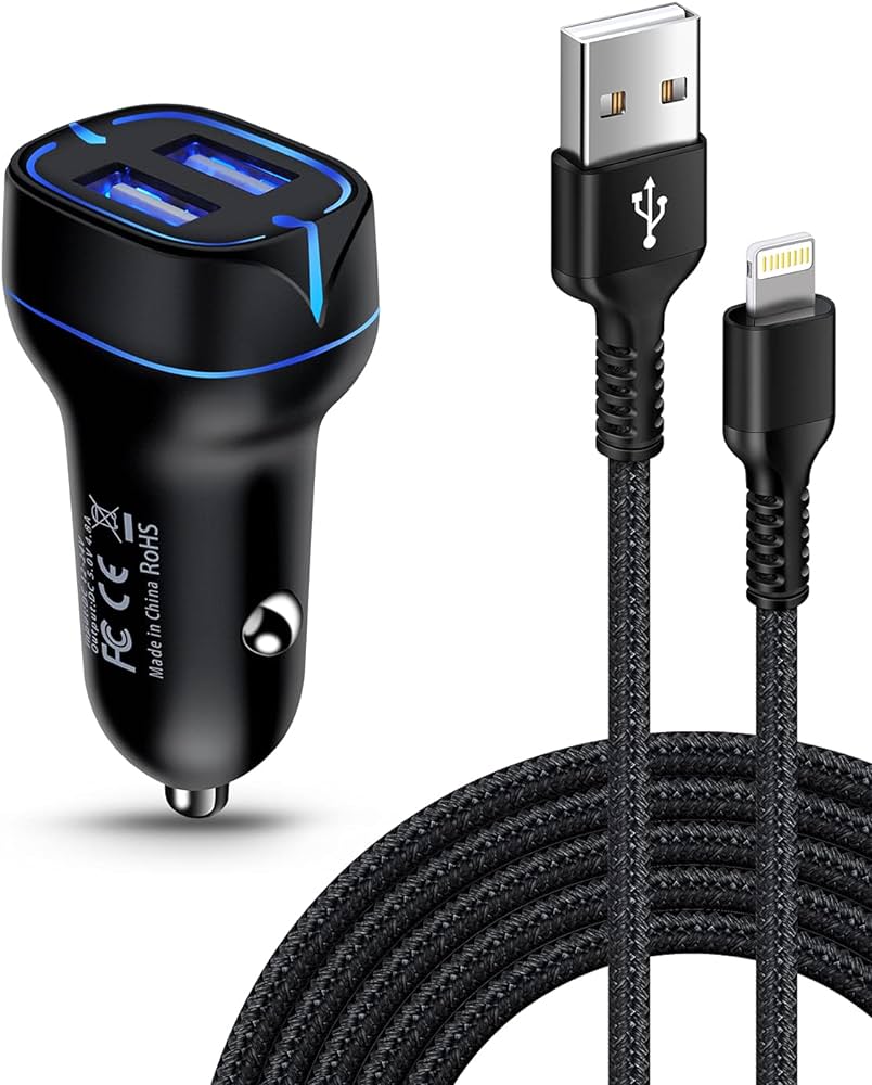 CARGADOR AUTO CON 2 SALIDAS USB CON CABLE Iphone